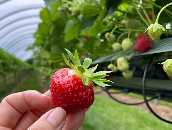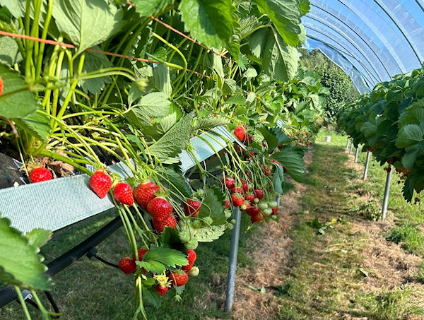 We have six polytunnels to ensure a plentiful crop from June through to the beginning of September. With convenient tabletop picking under cover, you can harvest our luscious fruits in comfort whatever the Welsh weather brings. We also grow delicious PYO blackcurrants and raspberries for you to enjoy.